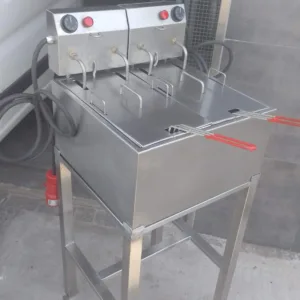 Freidora Eléctrica Industrial y Naval Doble de 30 Litros + Mueble de Acero Inoxidable
