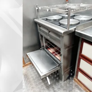 Fabricadas completamente en acero inoxidable 304, nuestras cocinas navales están diseñadas para resistir las duras condiciones del mar, brindando al mismo tiempo un rendimiento superior y una vida útil prolongada.